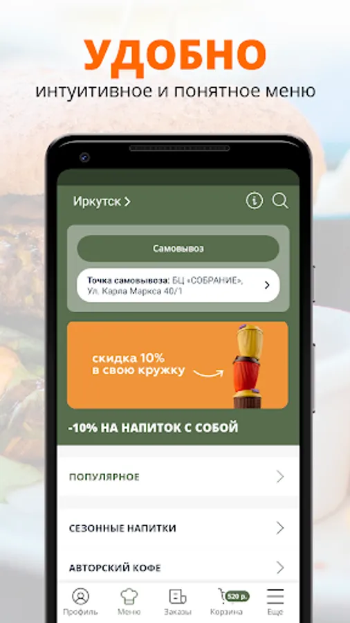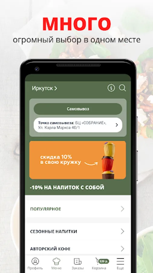 We strive to make life easier for our guests, save their time, giving a charge of vivacity and positive emotions with a high-quality, tasty product and good service. Here everyone will find something to their liking: both adherents of a healthy diet, and those who know how to treat themselves.