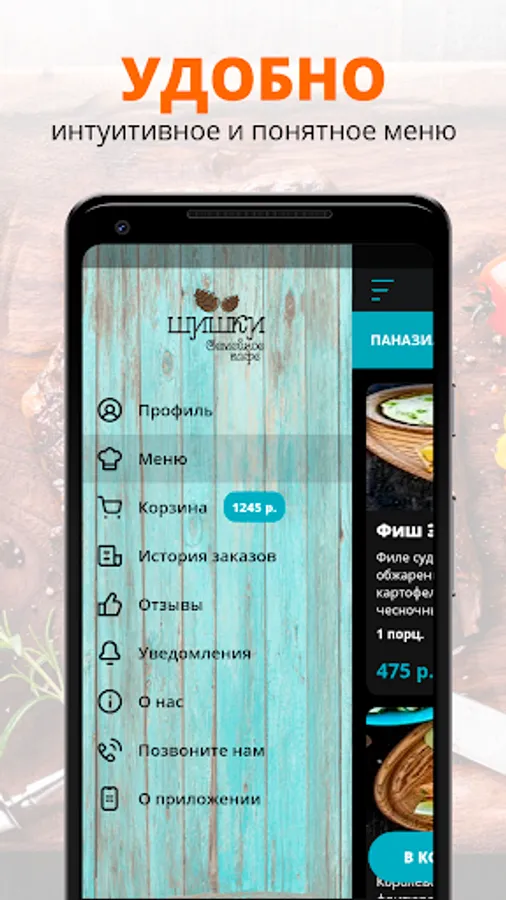 Use the convenient application for ordering food "Shishki".
