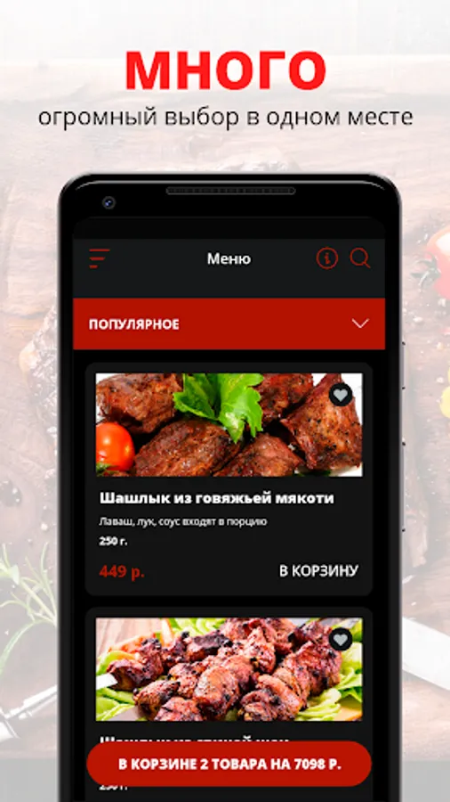 We make all kinds of kebabs - lamb, beef, pork, chicken, fish, vegetables, mushrooms, potatoes. We also make Lula kebab and Doner kebab. Everything is very tasty and inexpensive.