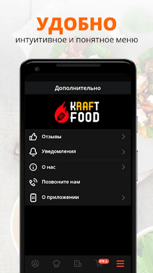 The KRAFT FOOD app is a convenient way to order food to your home or office! We prepare our dishes with quality fresh ingredients and deliver food quickly and carefully.