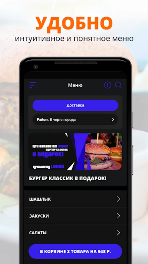 Sherwood App | Podolsk is a convenient way to order food to your home or office. Always on our menu - burgers, pizza, salads.