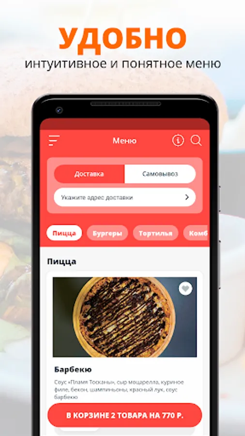 Use the convenient application for ordering food "RUSH PIZZA".