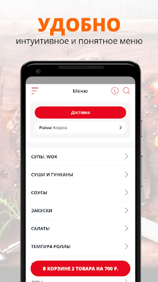 Application Ginger | Kovrov is a convenient way to order food to your home or office! We prepare our dishes with quality fresh ingredients and deliver food quickly and carefully.