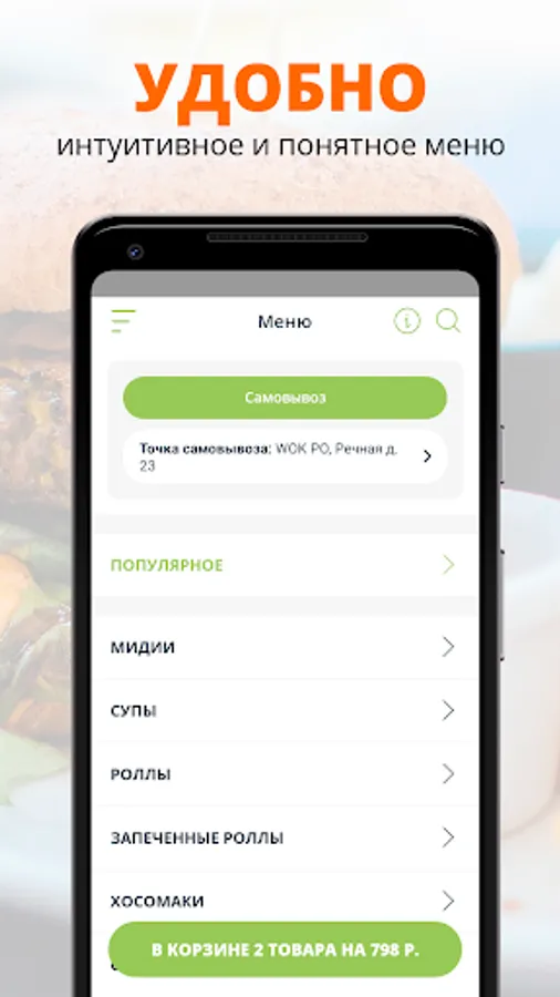 WOK PO app | Pavlovo is a convenient way to order food to your home or office. Always in our menu - delicious rolls, wok, burgers, salads, snacks.