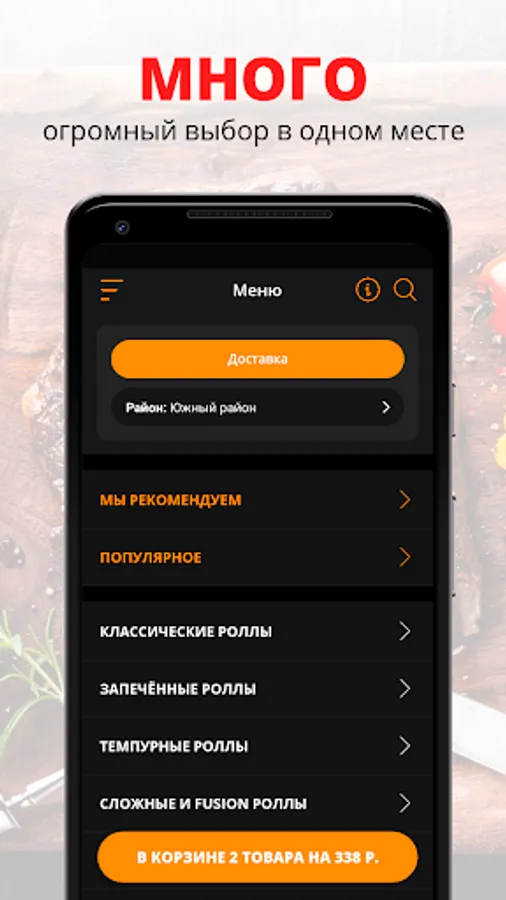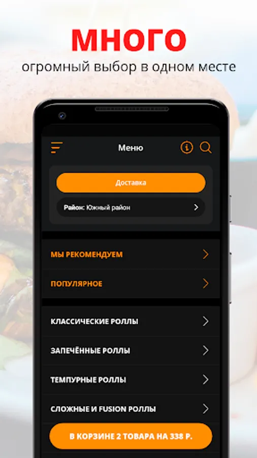 The Teikon app offers a wide variety of dishes for all tastes, including traditional Japanese dishes such as sushi, rolls, as well as more exotic options such as gunkans, tempura and others.