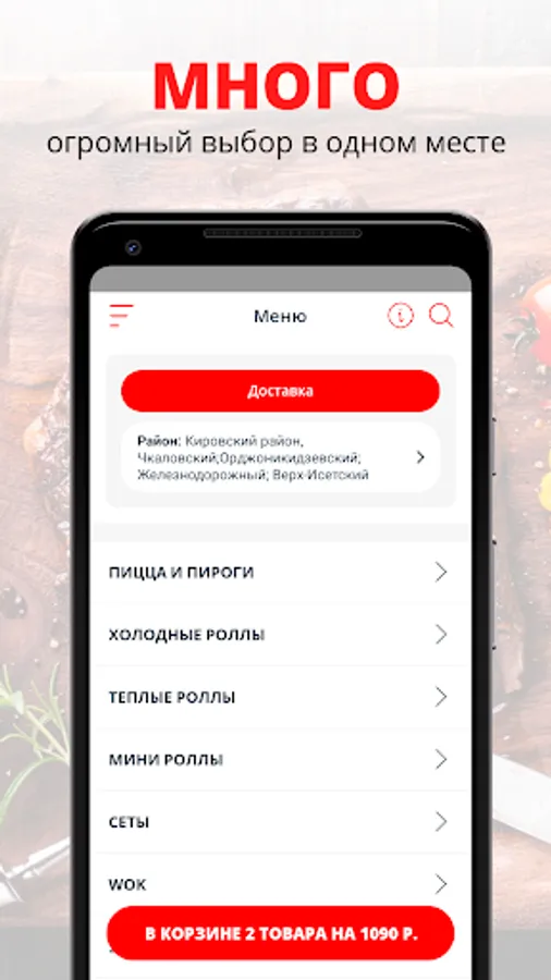 We put quality first, carefully select only the best ingredients, offering fresh vegetables, selected deli meats and natural cheeses, so that every slice of our pizza and every roll will please you with a richness of taste. We deliver ready-made food for you anywhere in the city!