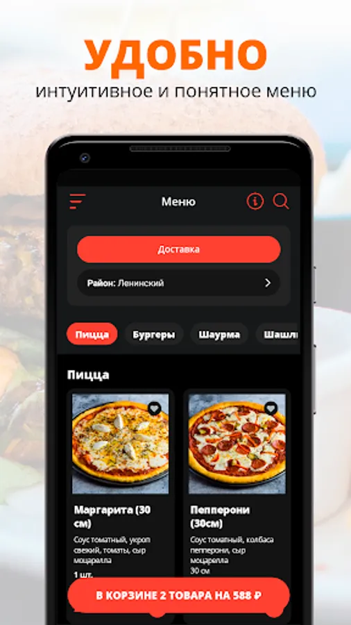 Application Fork | Izhevsk is a convenient way to order food to your home or office around the clock. Always in our menu - delicious pizza, kebabs, shawarma, burgers