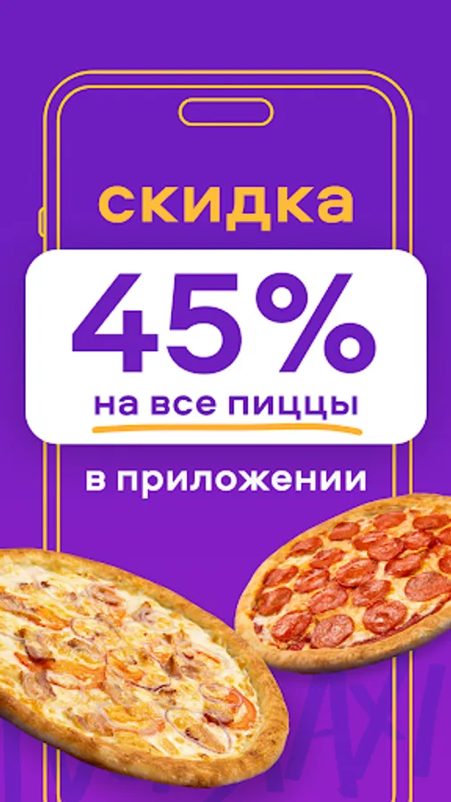 • We do not have special conditions under an asterisk. You download the application and enter the world of favorable prices, where pizzas, rolls, woks and other dishes are available with discounts up to 45%