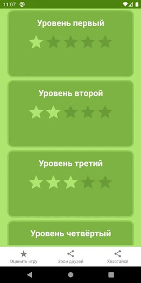 - 5 levels of the game;