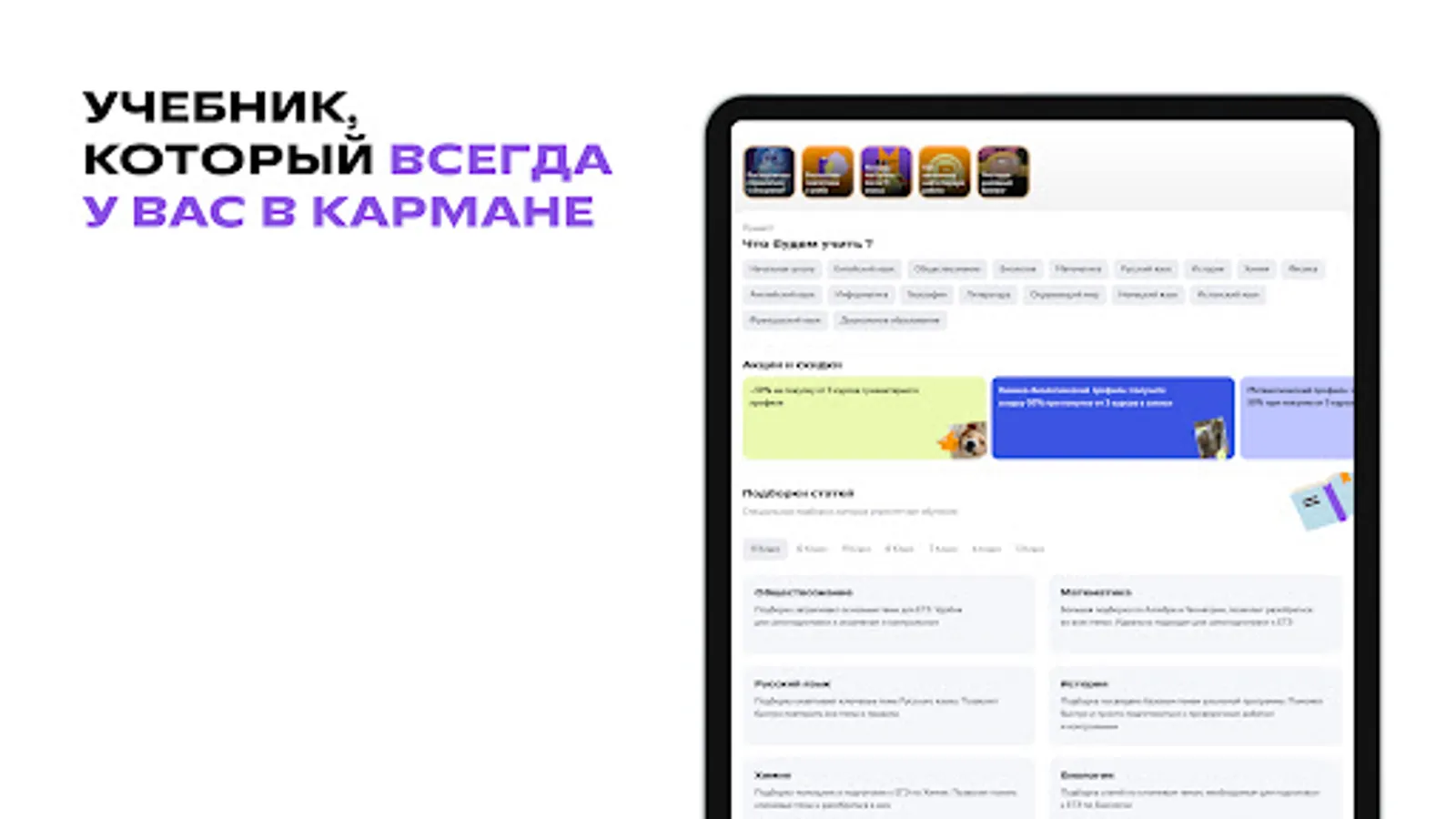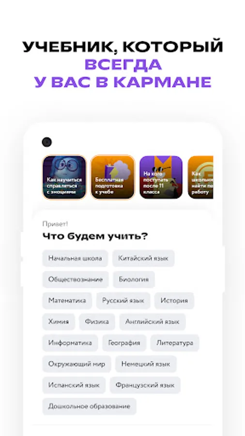 • We regularly add new materials in all subjects: algebra, geometry, Russian, physics, computer science, social studies, chemistry, history, biology, as well as materials for learning English, Spanish, Chinese, German, French, as well as Python programming languages , Java, C++ , Pascal