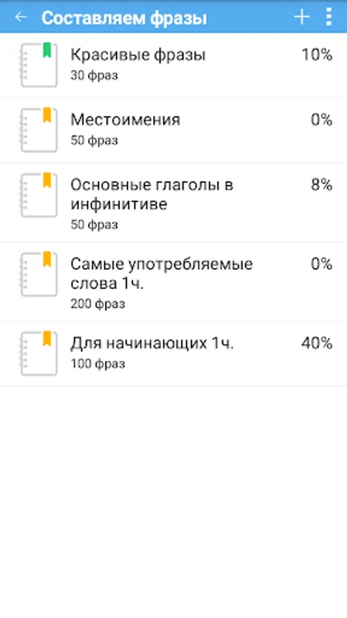 All training is based on tasks, during which the user receives gold stars. With a set of 3 stars, the dictionary element is considered learned. At the same time, French words and phrases are pronounced by the built-in speech synthesizer (controlled by the system settings of your Android).