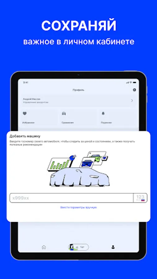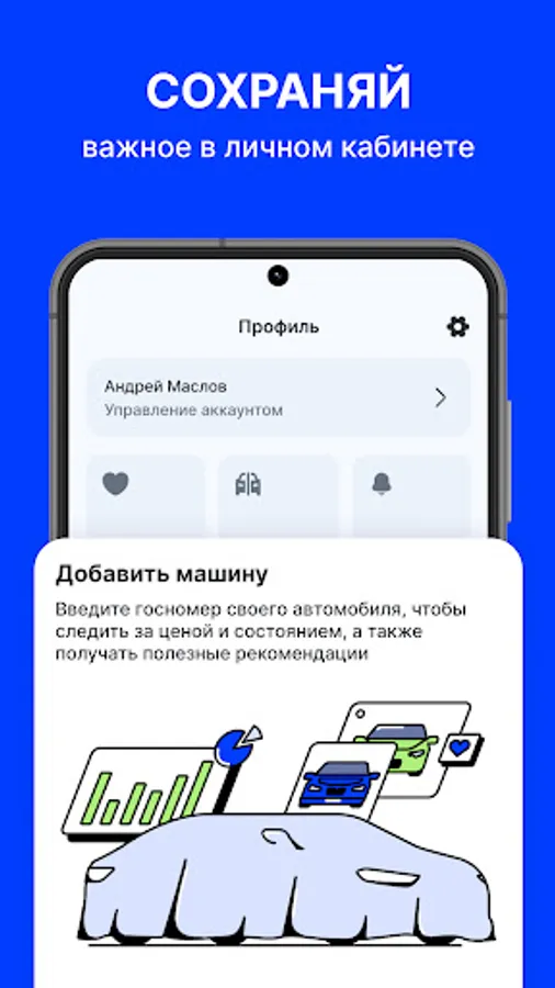 • personal account - all important information on the car you own - in 1 click on a separate tab.