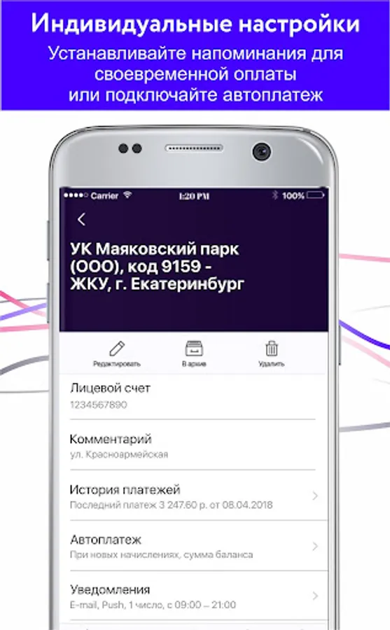 - receive notification of new accruals for housing and communal services and other services by phone;