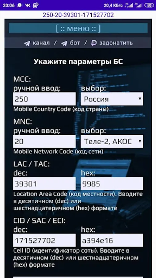 The program is intended for employees of the "Radio Frequency Service" to conduct radio monitoring and maintain a database on base stations of cellular communications.