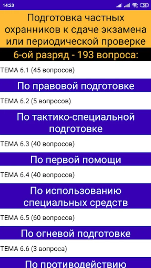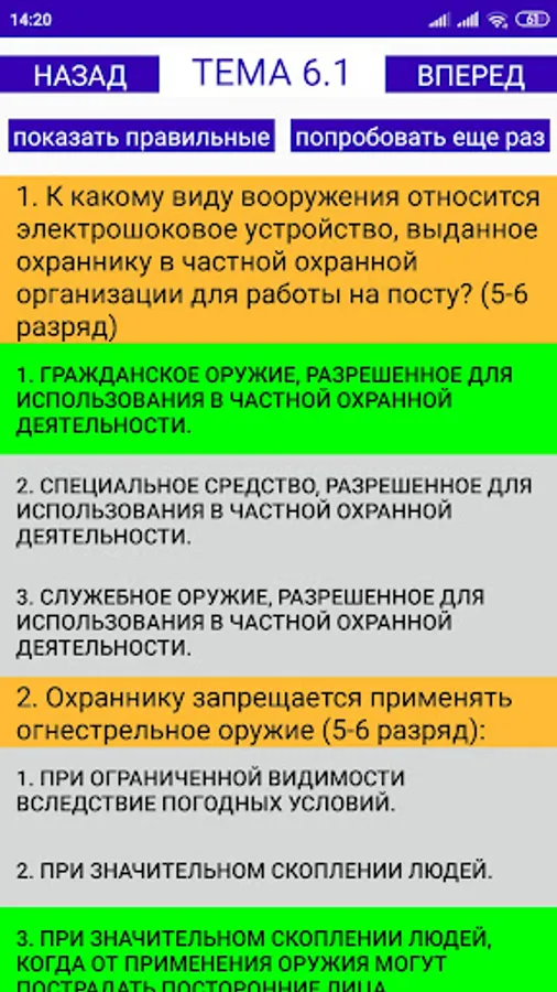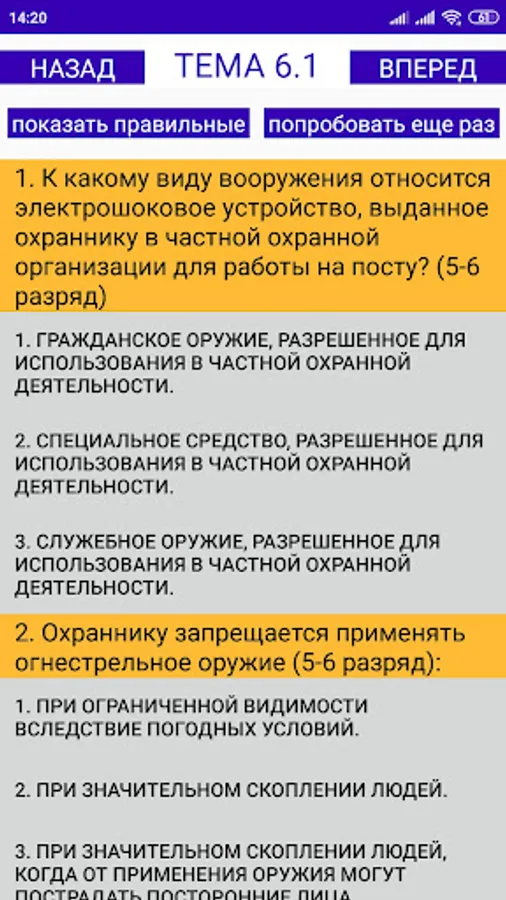 There are questions and correct answers to the guard of 4, 5, 6 categories.