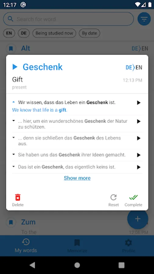 If you have been studying a foreign language and want to expand your vocabulary, Memose is exactly what you need. Read news in a browser and stumble over an unknown word? Just select it, look at the translation and send it to your collection - later you can learn it in a relaxed atmosphere.