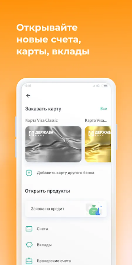 Mobile application of Derzhava Bank - round-the-clock access to accounts opened in PJSC Derzhava Bank and a convenient way to manage them.