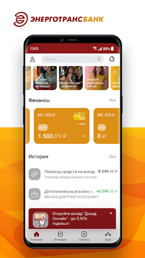 "ETB Online" combines simplicity and efficiency of application, as it allows you to save time on visits to the bank's office and manage funds in your account remotely.