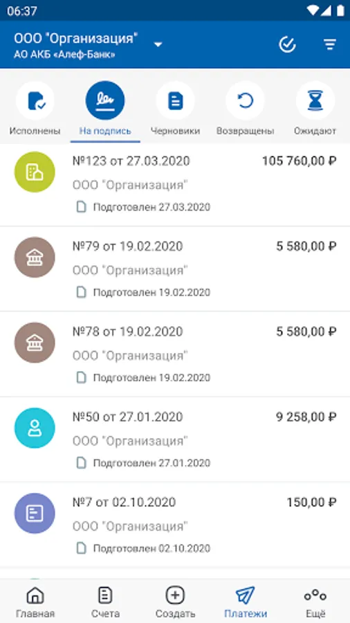 The Alef-Business application for corporate clients of JSC JSCB Alef-Bank is a convenient way to keep control of your organization's funds and always be aware of the executed financial transactions.