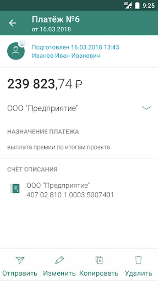 - view account details and send them to the counterparty
