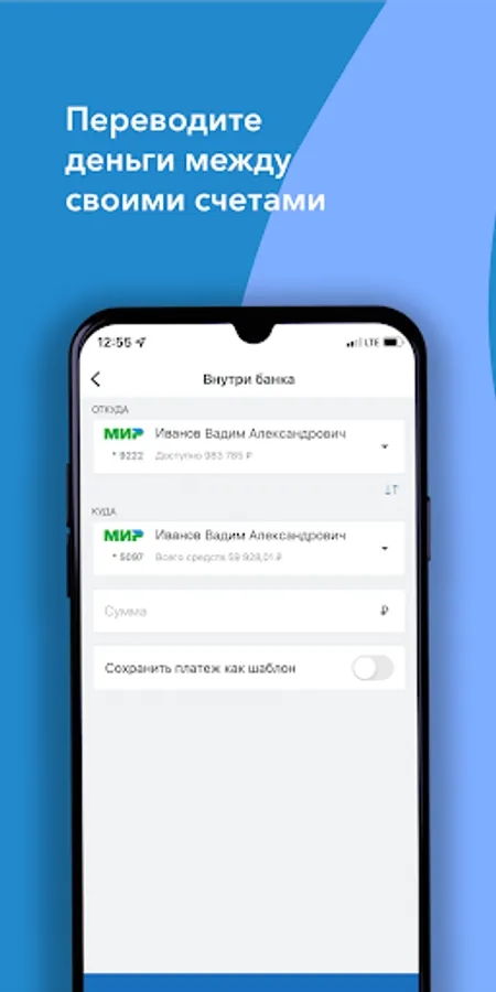 Download the app and start managing your accounts today. Register in the system through the "Registration" section using the card or passport data, or register at any bank office.