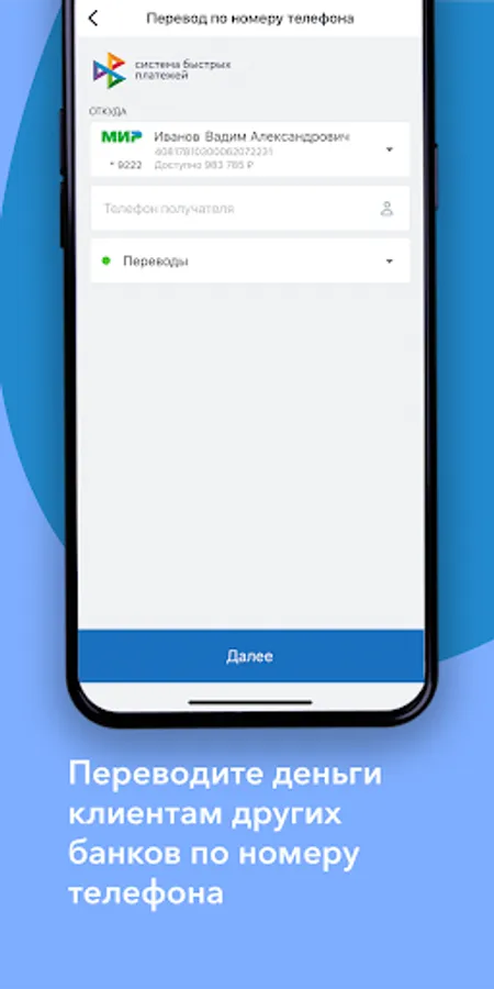 • Transfers from card to card, incl. transfers from cards of other banks;