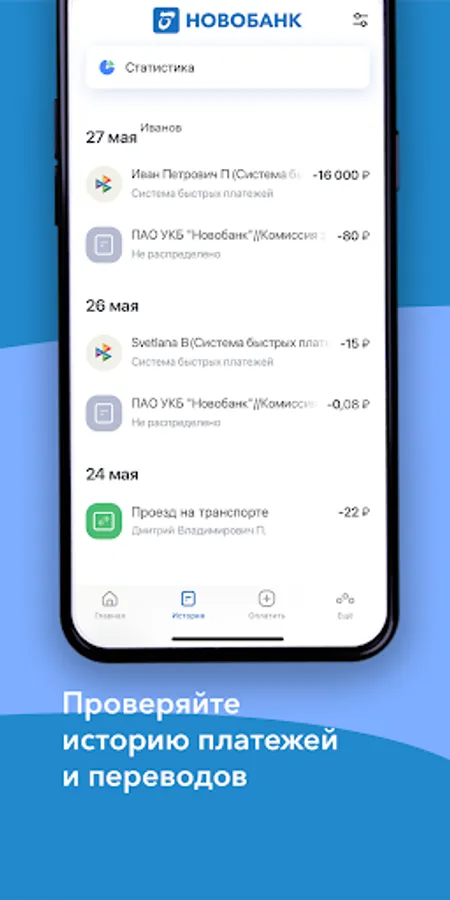 • Transfers between own accounts, to other clients of PJSC UKB Novobank, as well as to other banks;