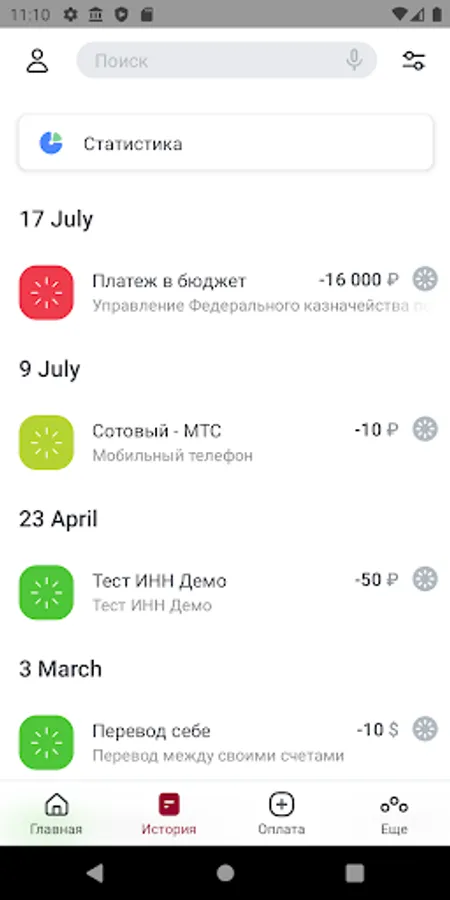 - Payment orders: Avon, Oriflame, Faberlic, OTTO, Zepter