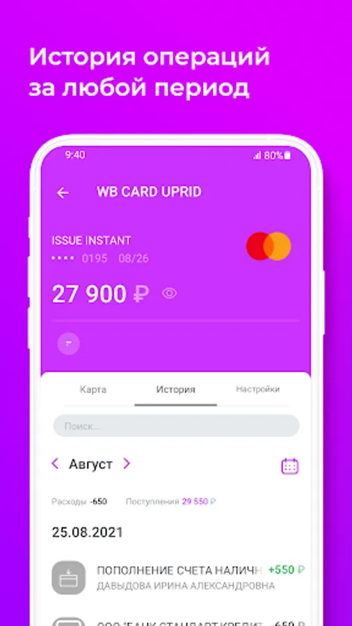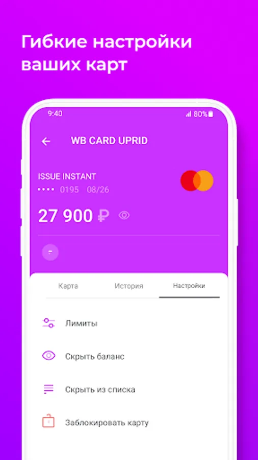 Мобильное приложение WB CARD – это удобный и безопасный интернет-банк для Вашей карты.