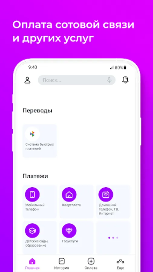- быстрая оплата мобильной связи и интернета;
