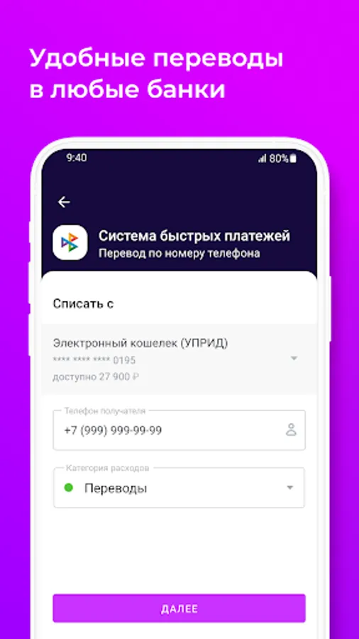 - переводы по номеру телефона через систему СБП;