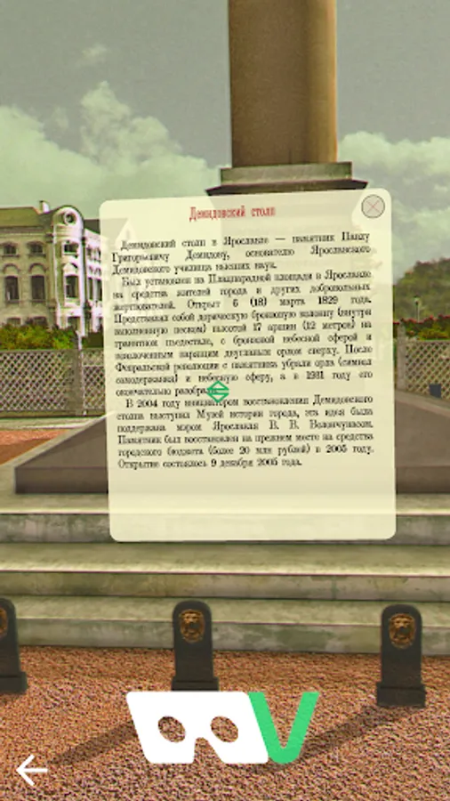 Plunging into the app, you get the full effect of presence. This is surprising and stunning. You find yourself in the park and see Demidov adjoining Revolutionary street (former street Resurrection), the Soviet area (the former Elias Square) and the mail street (former Spasskaya Street) one hundred years ago, and can travel to Yaroslavl in the legendary time.