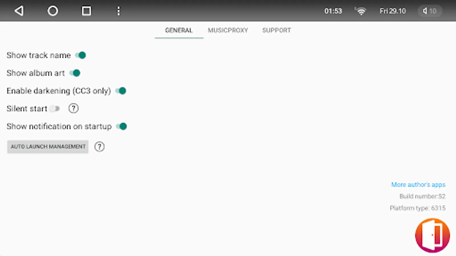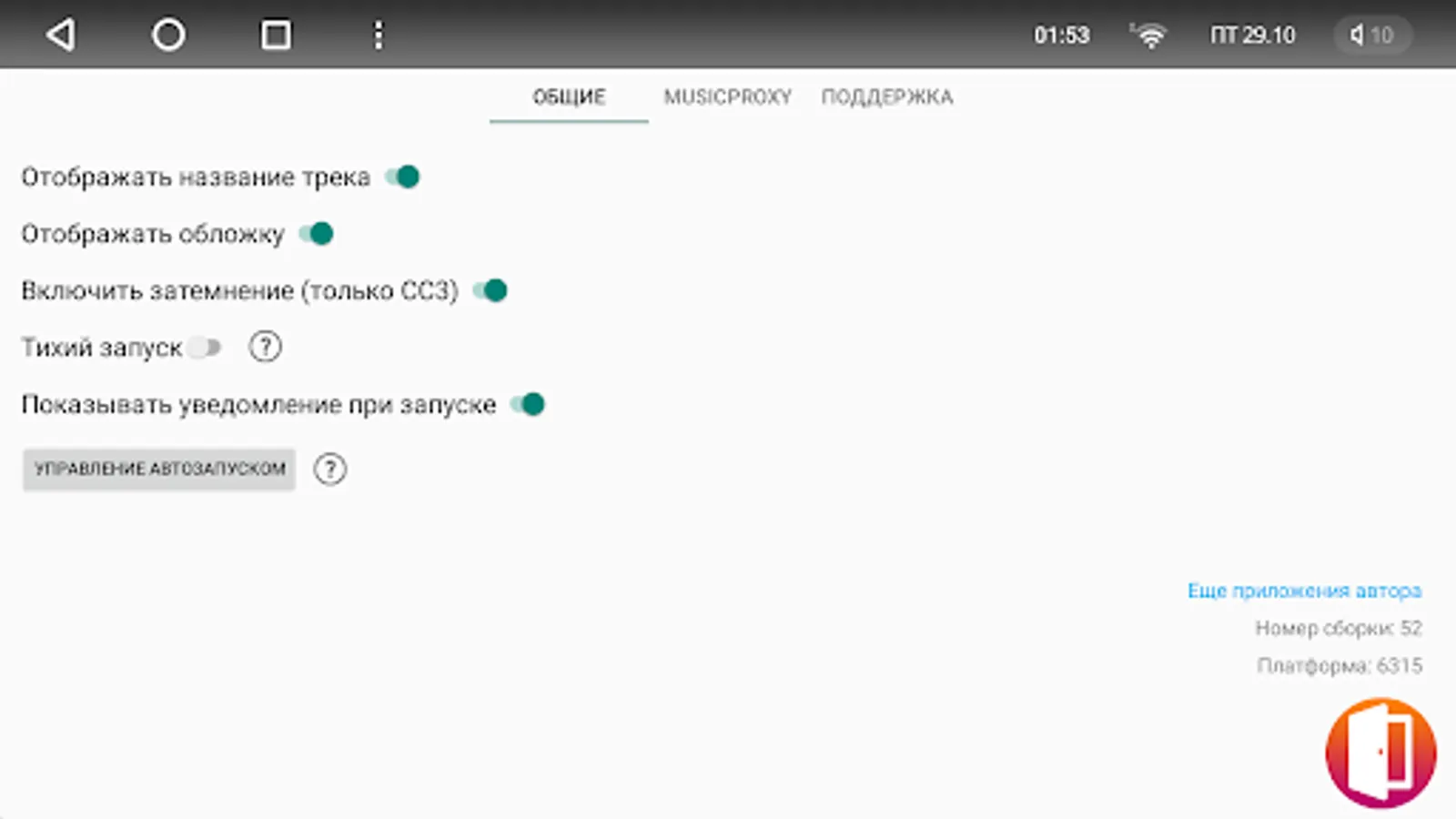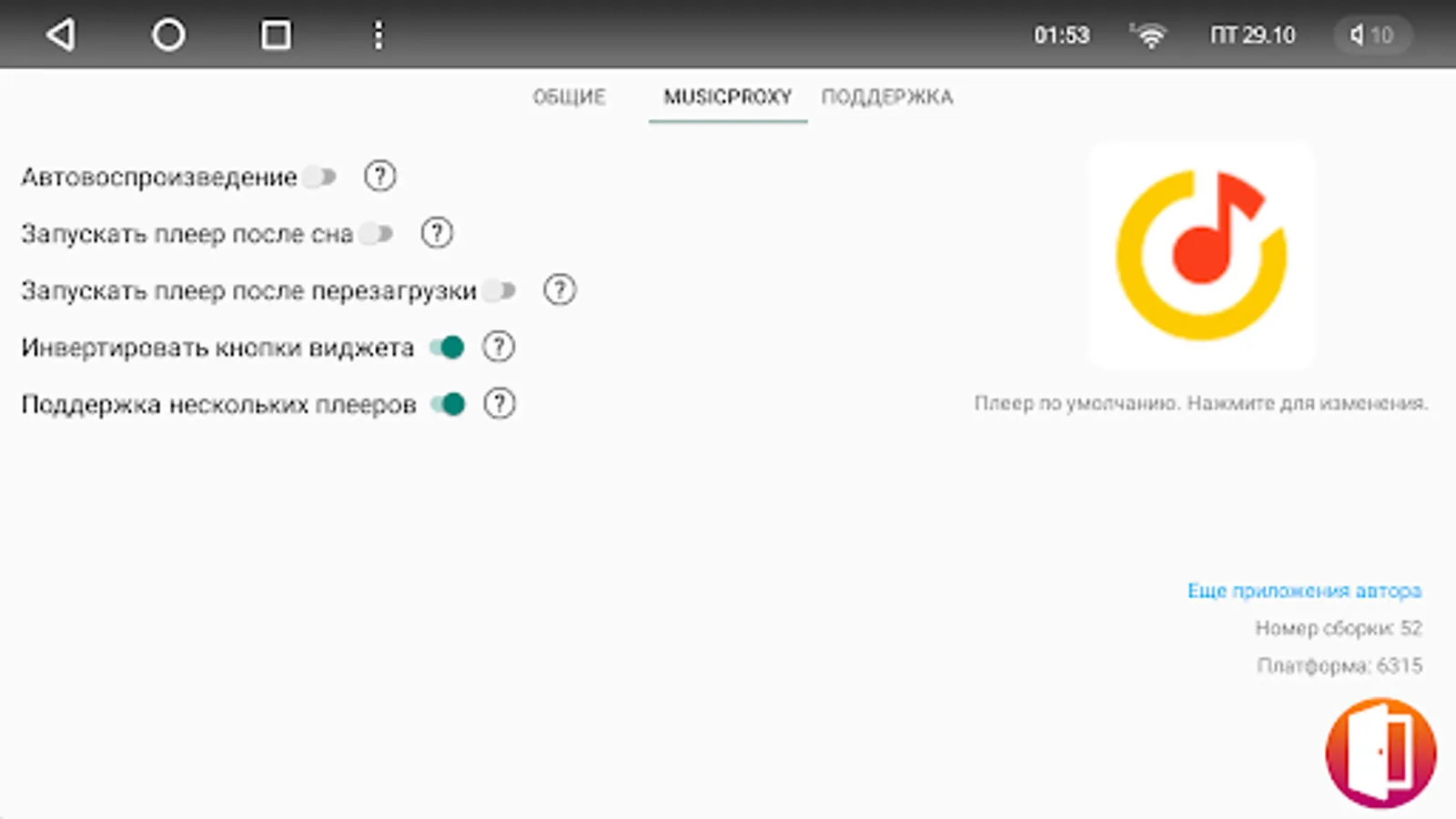 You can use any of the popular music players. In this case, information about the title of the track, its artist and album cover will be displayed in the standard Teyes widget.