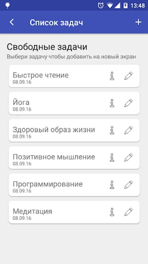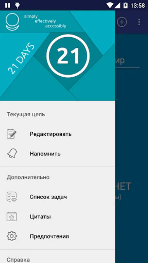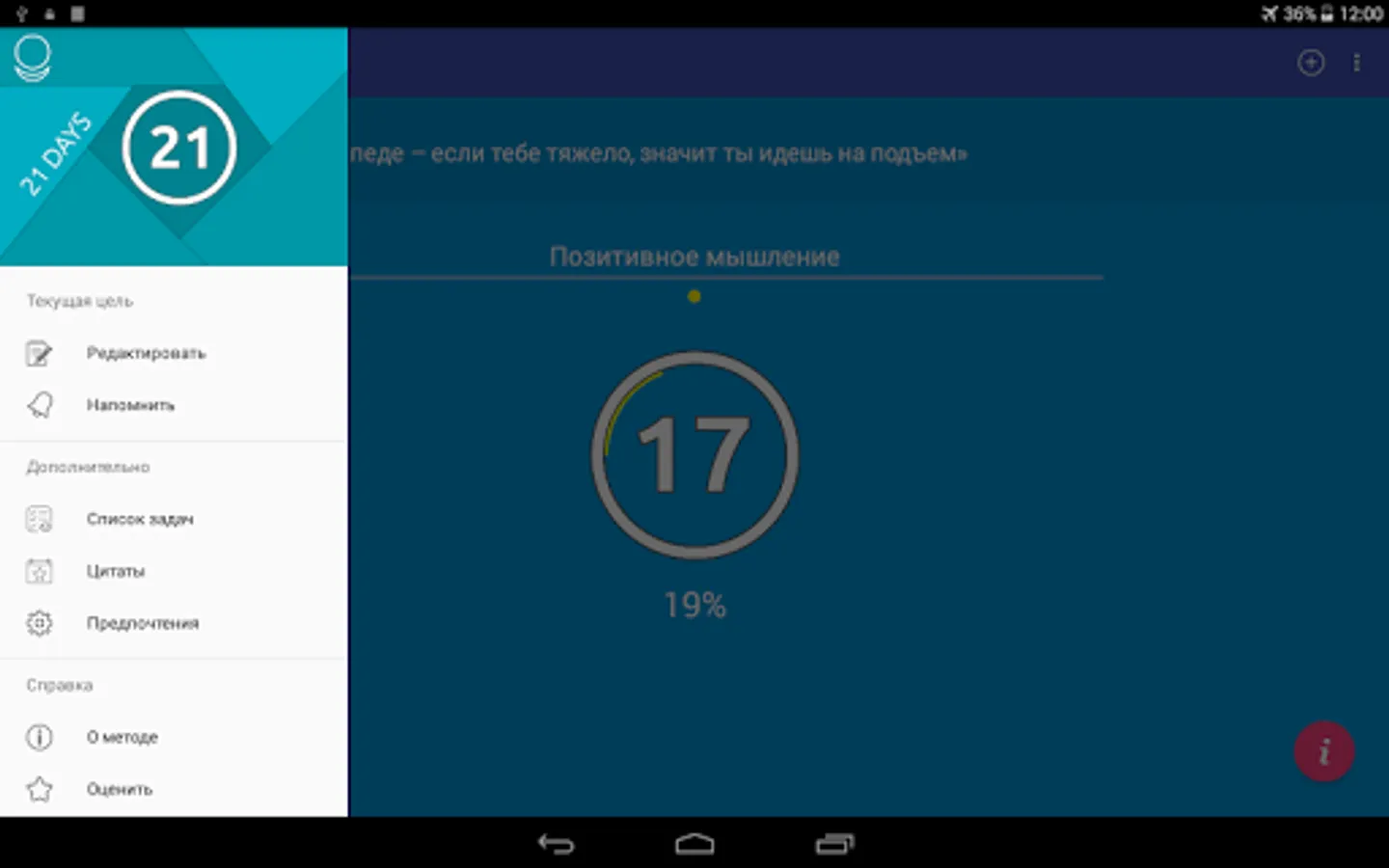 The application helps to implement the acquisition of good habits or get rid of the bad by the method of "21 Days". We all have work to do - someone much irritated, offended someone, someone leads an unhealthy lifestyle. There are a lot of negative habits, which should get rid of. There are a lot of good habits, which are worth to buy. Naturally, acquiring good habits and getting rid of the poor, people change their lives for the better.
