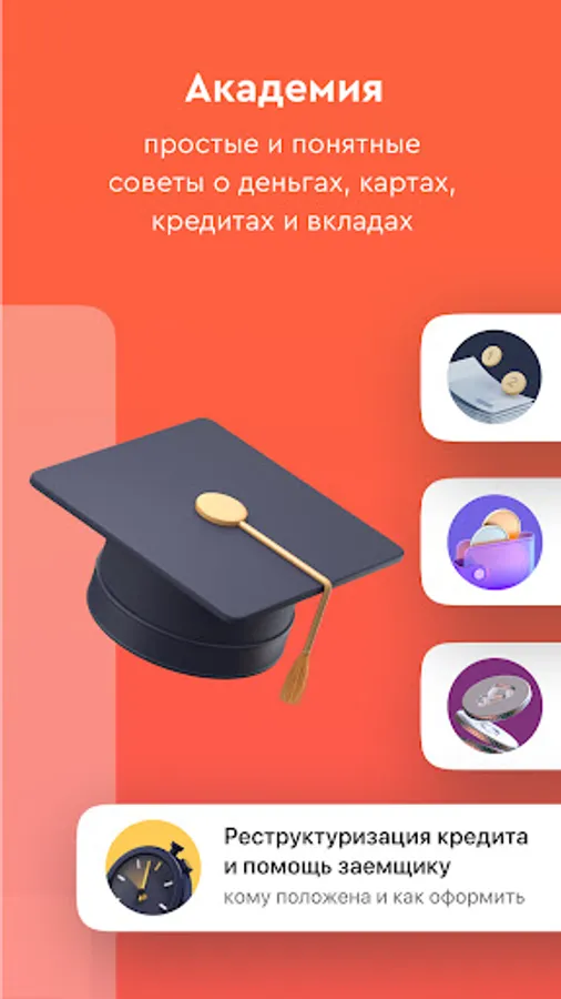 Apply for loans directly in the application, no need to go to the office. You will be able to repay the credit account ahead of schedule, in part or in full, follow the payment schedule and apply for restructuring, if necessary.