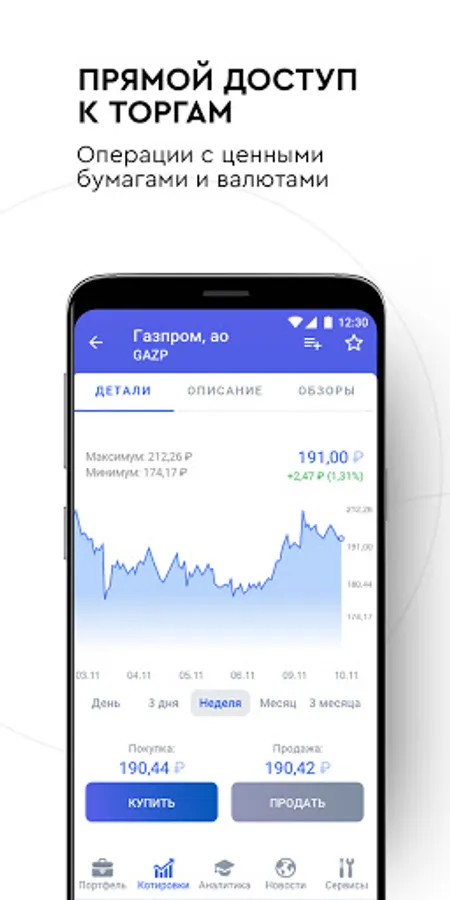 ГПБ Брокер – приложение для клиентов брокерского обслуживания Газпромбанка с возможностью совершения торговых операций с ценными бумагами и валютами.