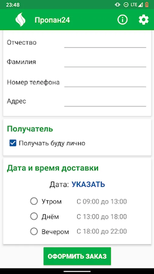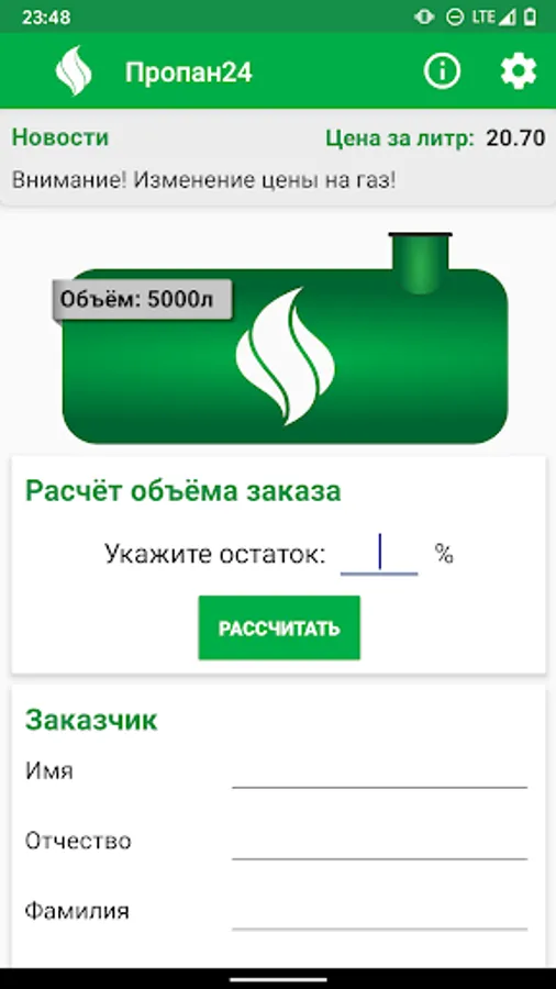 • Calculate the order volume by entering the percentage of gas remaining in the gas tank;