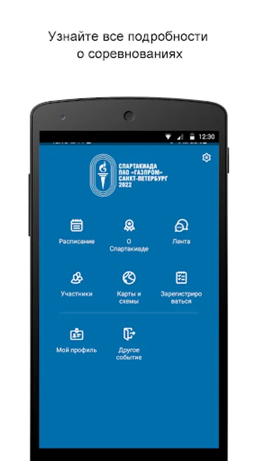 The official app of the PJSC Gazprom 2022 Summer Spartakiad in St. Petersburg.