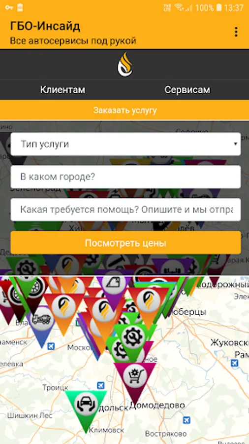 You, as a customer of auto services, for example, can find and see on the map companies that provide services for motorists in your city. You can see the rating and reviews about the services, select and contact him. And also request the service you need at an interesting price. And services, if they can help, will answer you.