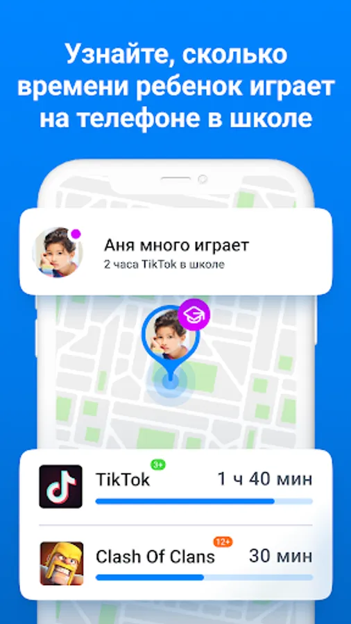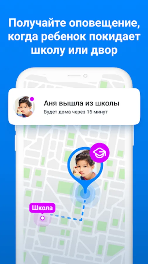 Create geofences and receive notifications when your children arrive or leave the specified places (school, home, etc.): You can always find your child's device on the map, and the GPS tracker will help you with this.
