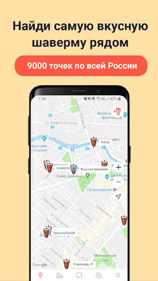 Moscow, Saint Petersburg, Ekaterinburg, Novosibirsk, Kazan and Ufa. We are all loving shawarma. Our application brings people together even more.
