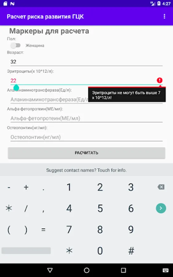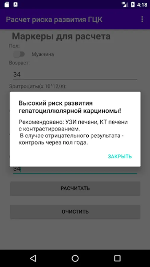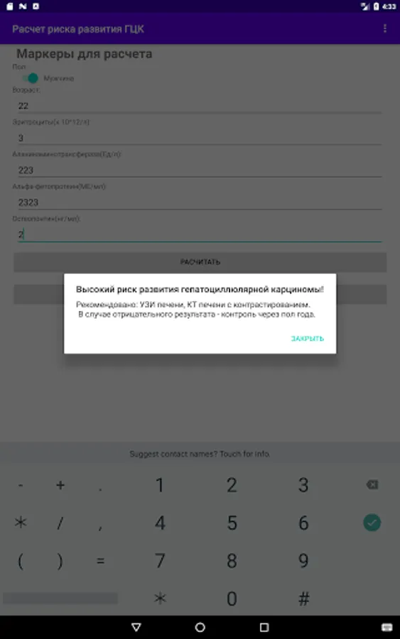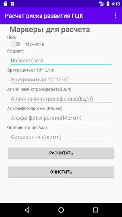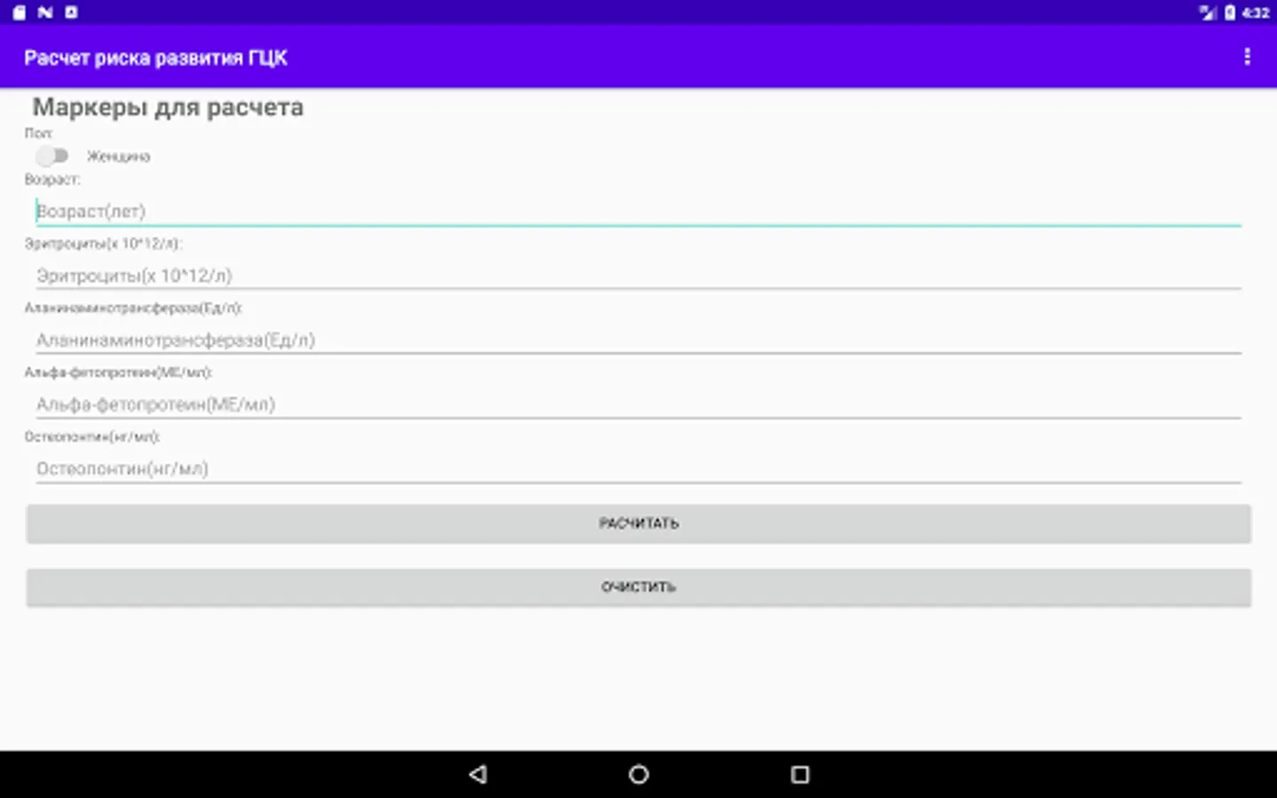 This application allows you to assess the risk of developing hepatocellular carcinoma in patients with chronic hepatitis C.