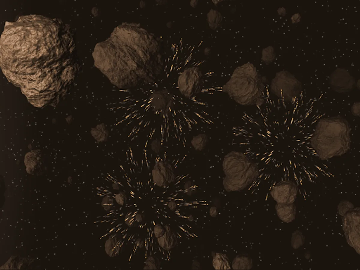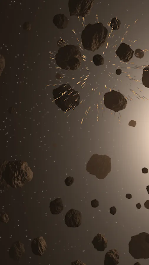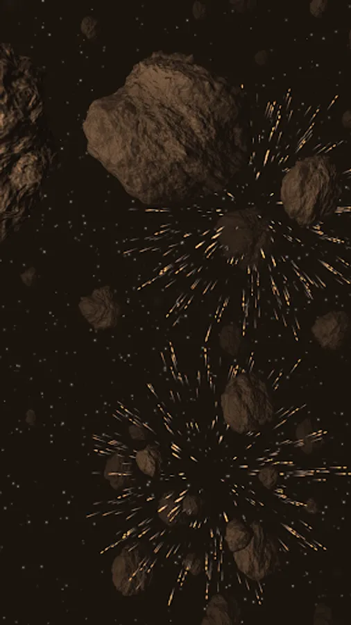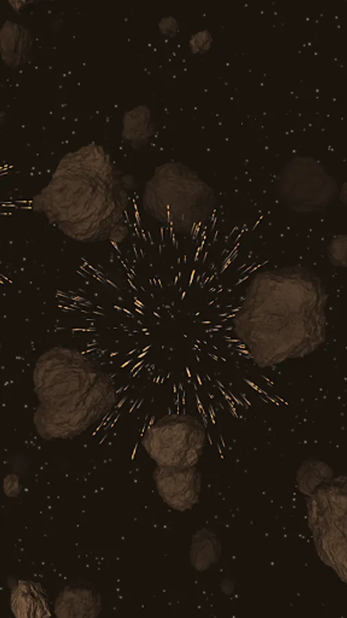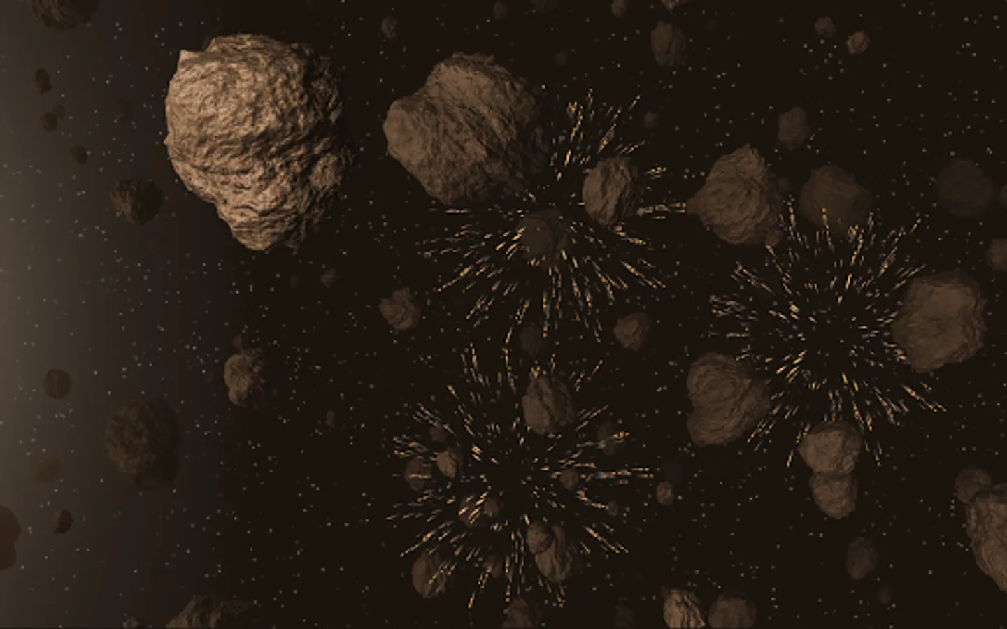 Desolate cosmic scenery, starfield, asteroids and stardust. A cosmic flight among asteroids and asteroids explosions.