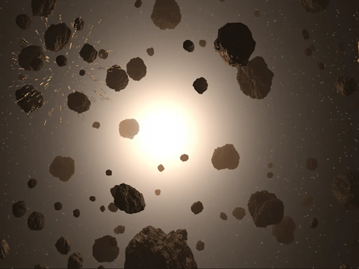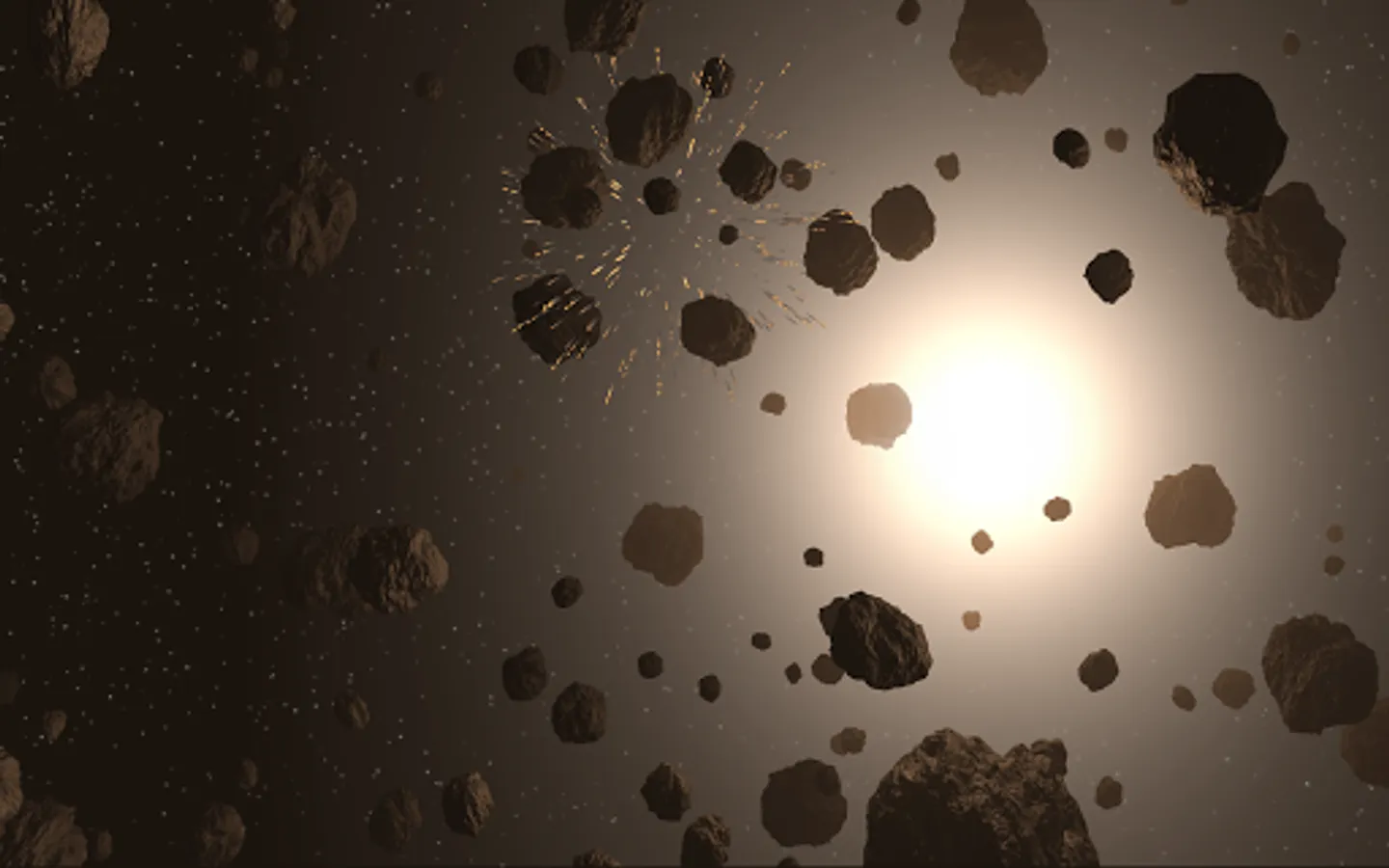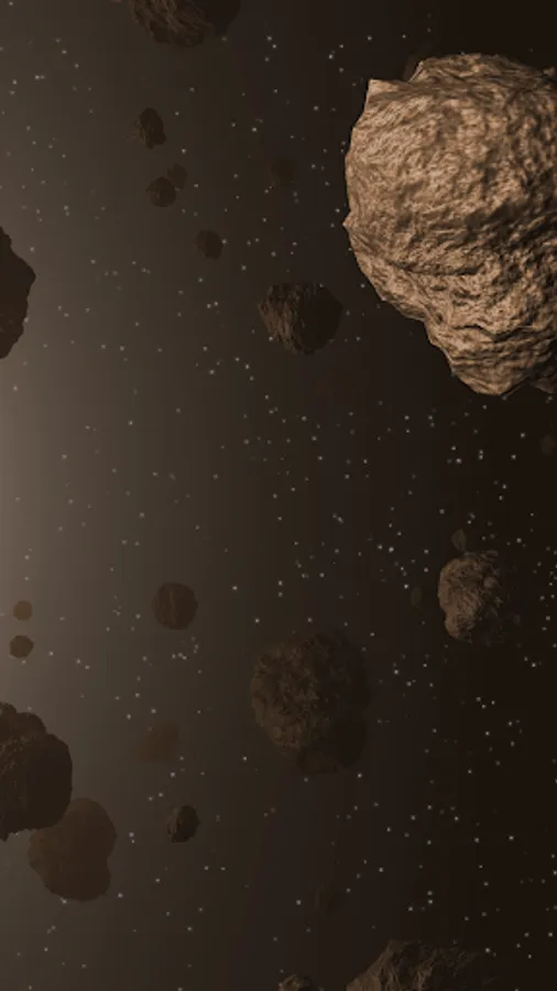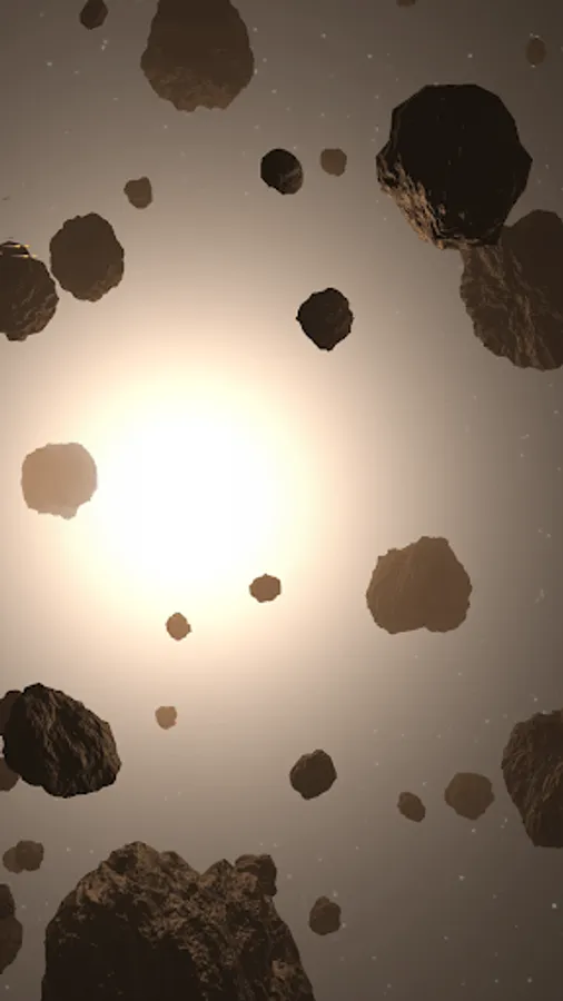Desolate cosmic scenery, starfield, asteroids and stardust. A cosmic flight among asteroids and asteroids explosions.