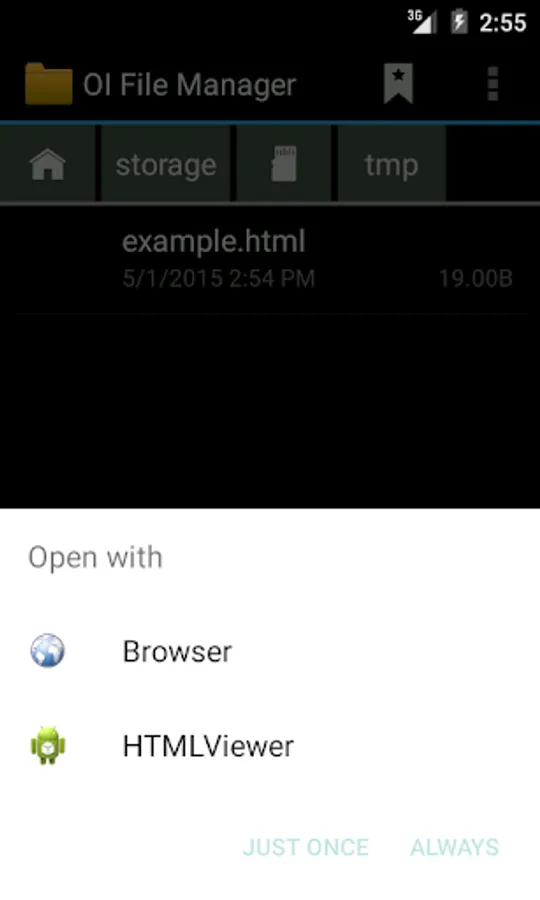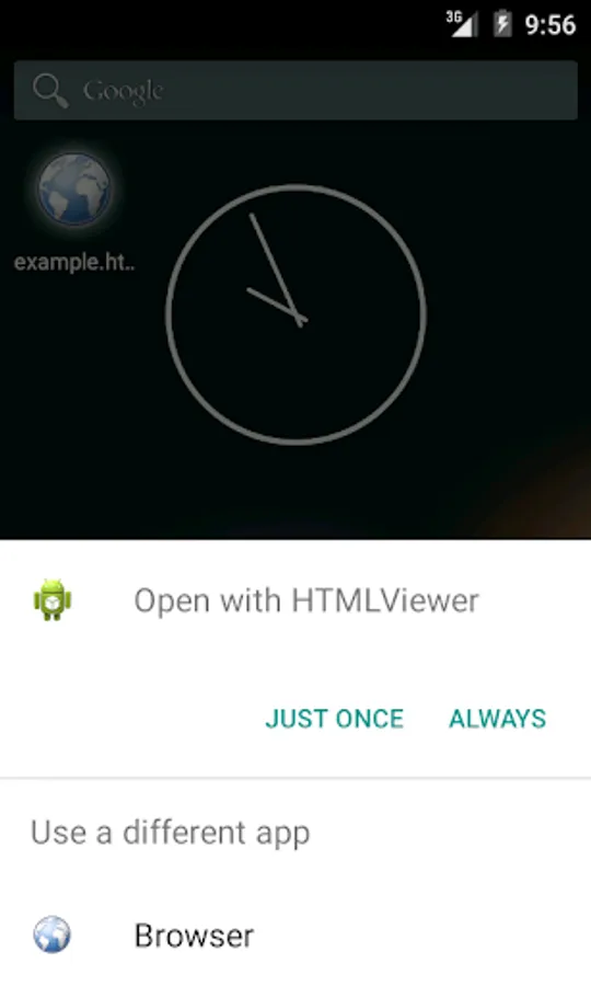 This application adds ability to open HTML/text/image files saved to SD card from a file manager directly in the browser.