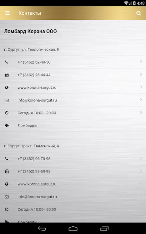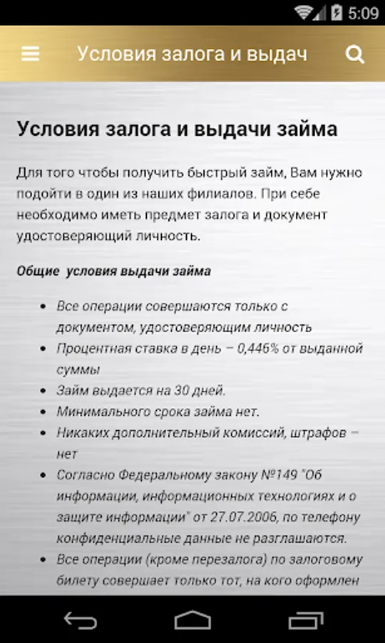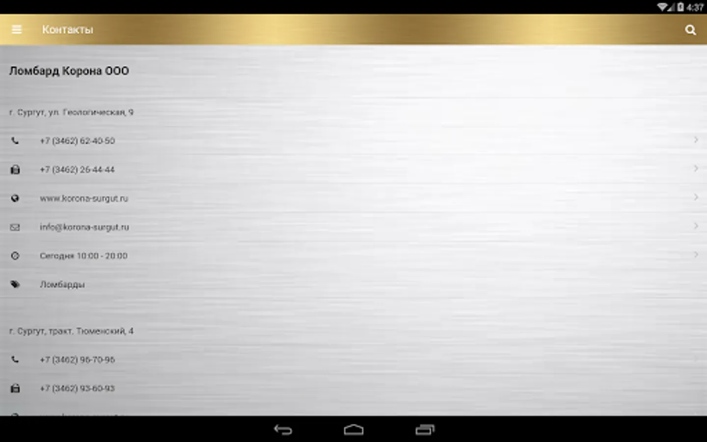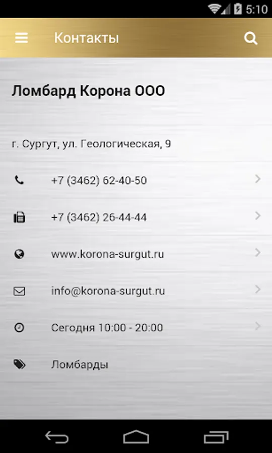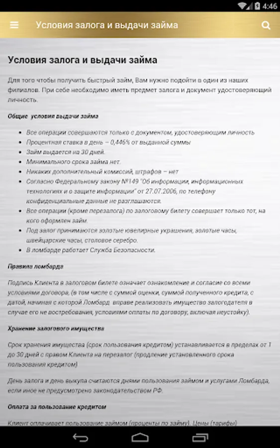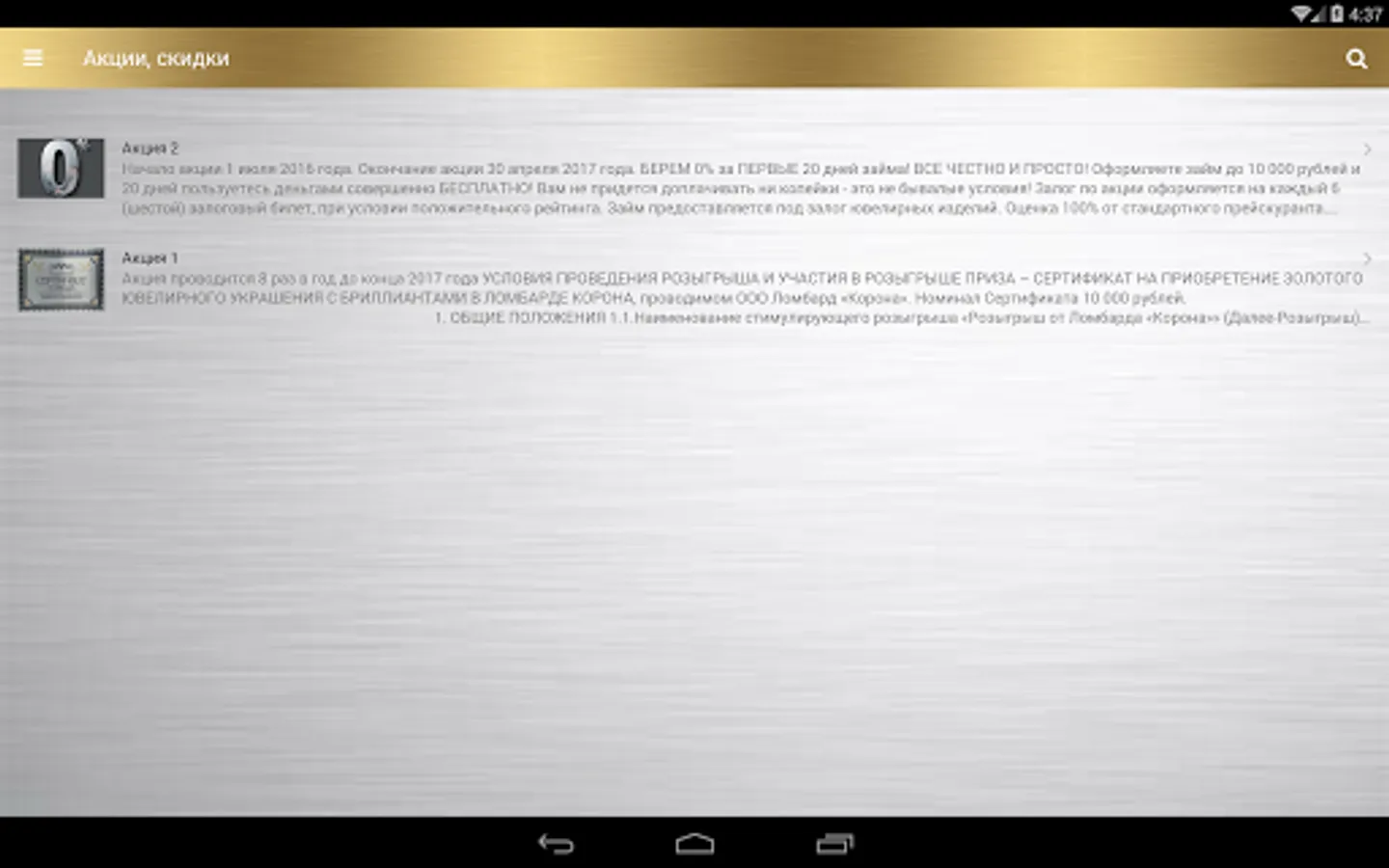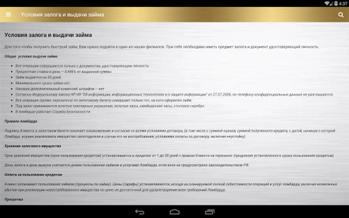 Network Lombards "Crown" was founded in the city of Surgut in 2009 and is considered one of the most reliable partners in matters of credit against collateral jewelry, silverware, Swiss watches, your Vertu phone and branded items. We also lend on the security of jewels. Constantly held shares and drawings. We provide discounts for pensioners. For pawnshop customers a rating system that allows you to receive additional benefits and greater loan valuation of the property. Our Lombardy there are specialized stores, where all the conditions laid down for storage of things that ensure their safety, no harmful effects and prevents access by unauthorized persons. All of the mortgaged property is insured for the benefit of the client. You can always check the amount of debt in the app or on the website. Lombard Crown strictly observes the Russian legislation and the requirements of the regulator of the CBR.