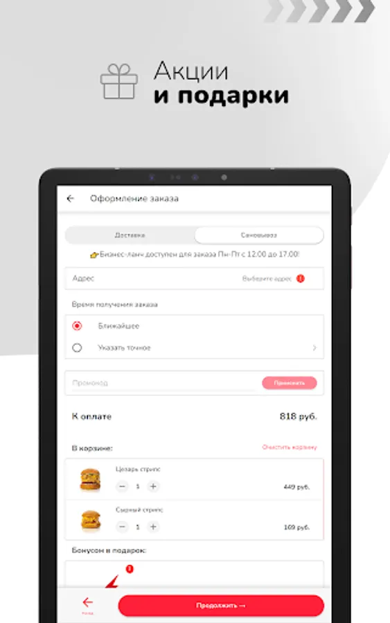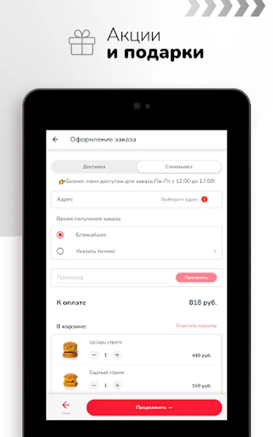 In the app we give gifts, talk about specials. offers and accept orders for delivery.