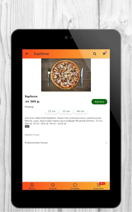 When buying pizza from us, you can be sure that we use only the best products from both foreign and domestic producers and are proud to prepare pizza according to a unique Italian recipe.