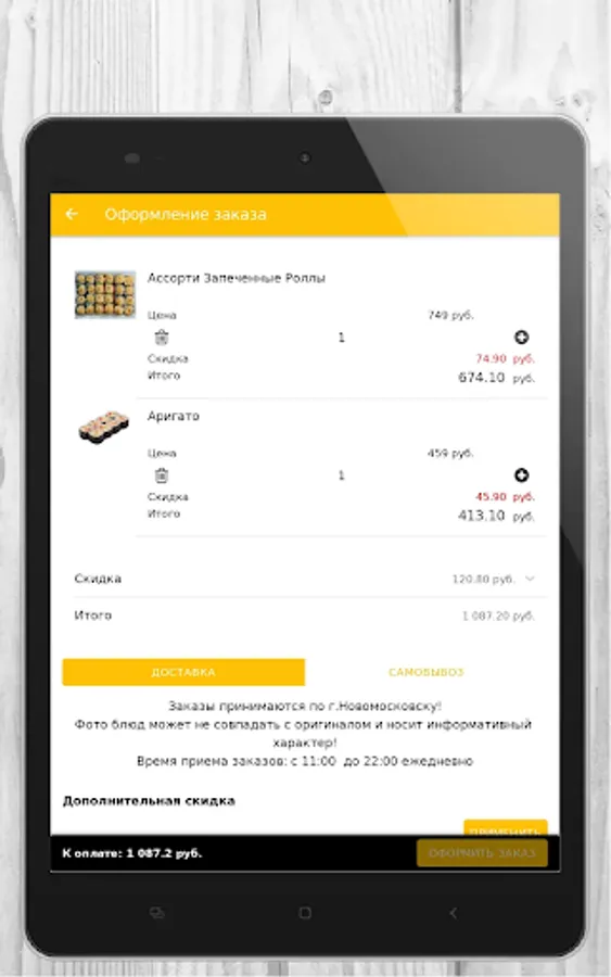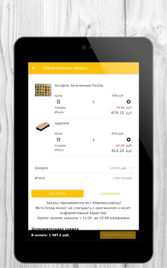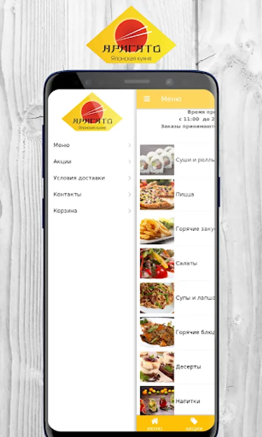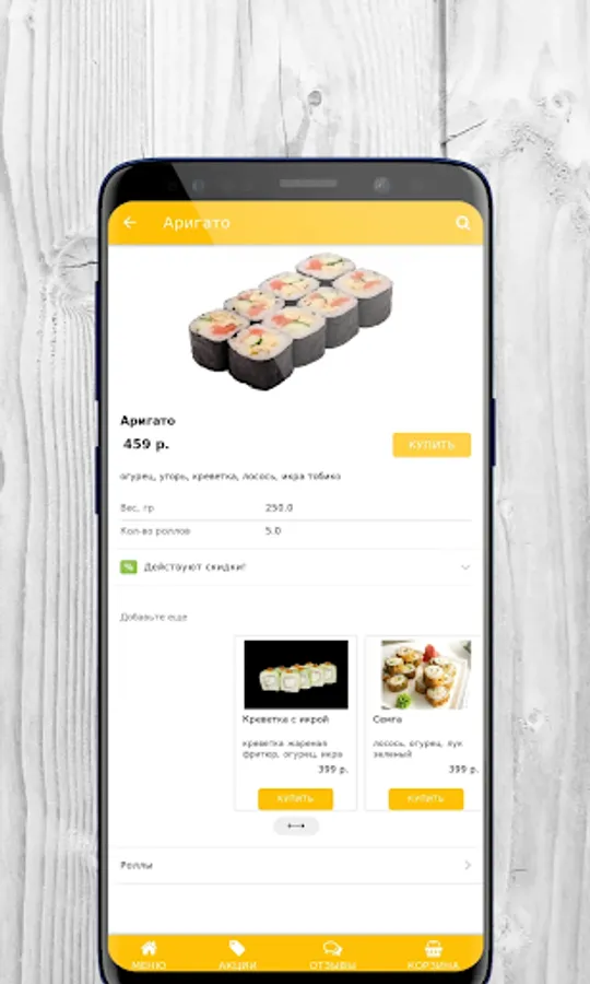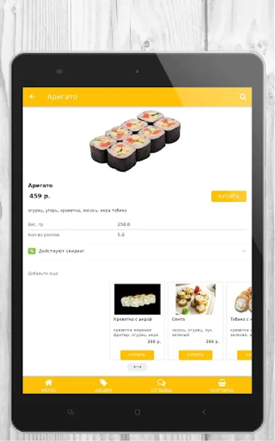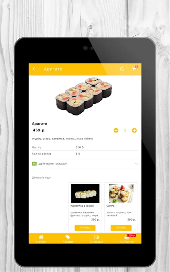 Fresh vegetables, proper meat, honest fish! We will prepare for you and quickly deliver your order to your home and office! Make an order quickly and conveniently using our mobile application "ARIGATO". The menu includes a variety of sushi and rolls, juicy pizza, noodles and other delicious dishes! When ordering through the mobile application, there are profitable promotions and discounts!