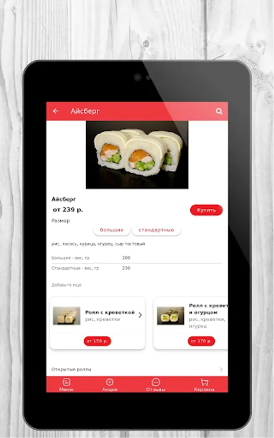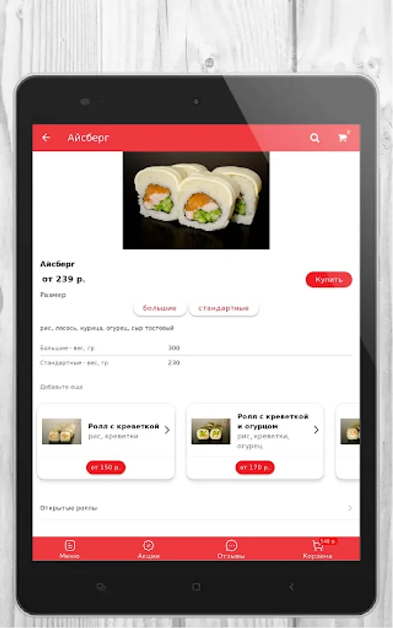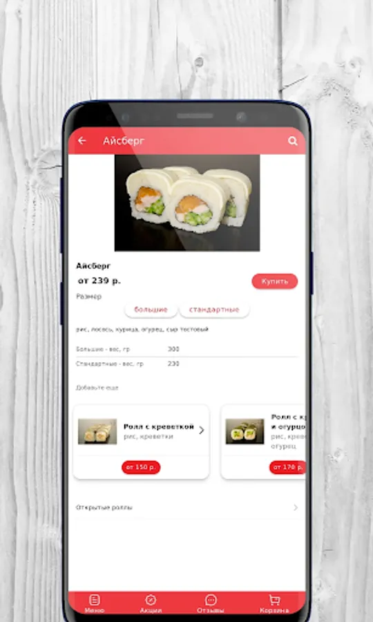 The menu offers pizza for different tastes. The variety of rolls will also pleasantly surprise you. You yourself can choose the size of the rolls: standard or large! With us you can have an inexpensive and hearty lunch and dinner both at home and in the office.